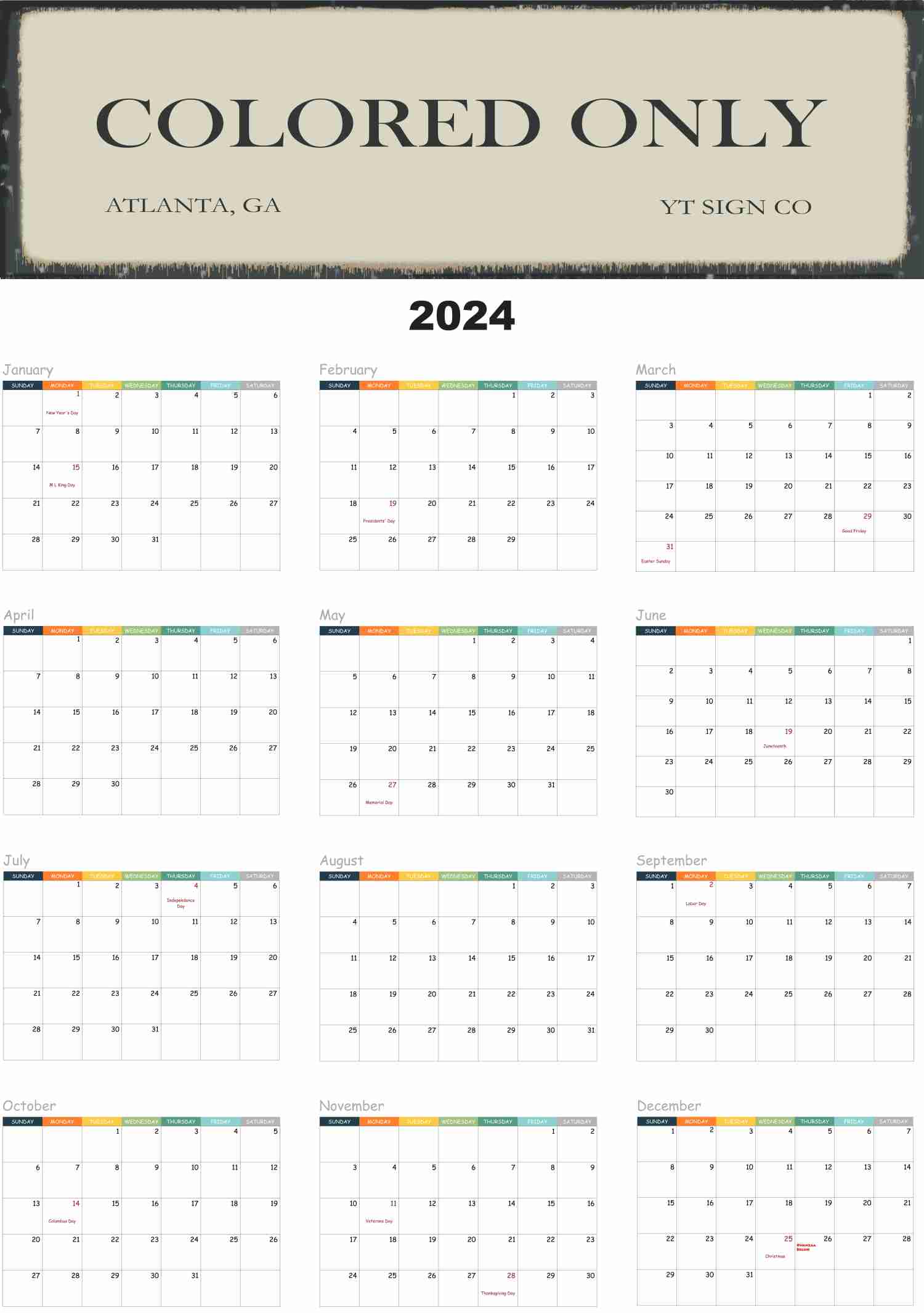 Colored Only | 2024 Poster Wall Calendar | DobsonProducts.com